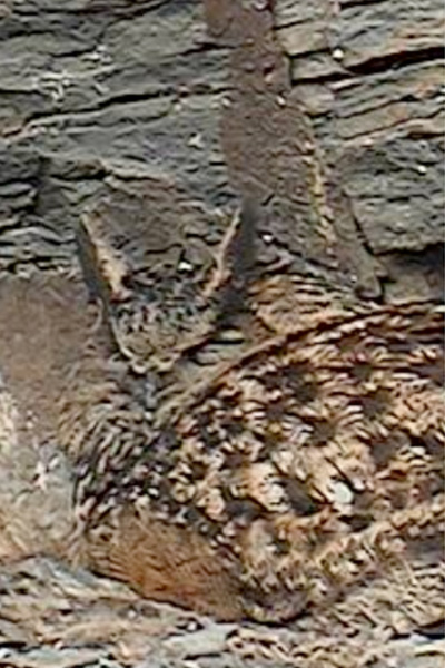 Meine Versuche, die Uhudamen anhand der Gefiedermerkmale zwischen Schnabelansatz und den Federohren zu identifizieren, sind daher nur unsichere Hinweise.