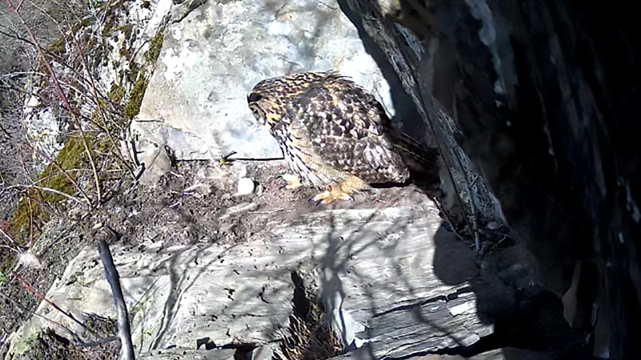 Die „neue“ Cam 5 (ehemals Cam 4) zeigt nun live ein wunderschönes Stück Felslandschaft, hier direkt mit Wanderfalkenbesuch.